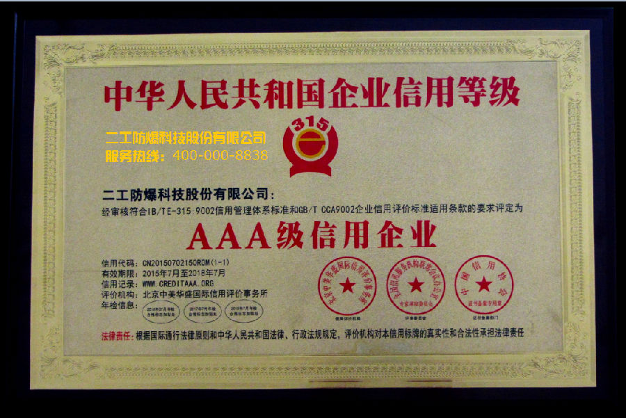 • 二工股份(AAA級(jí)信用企業(yè))..